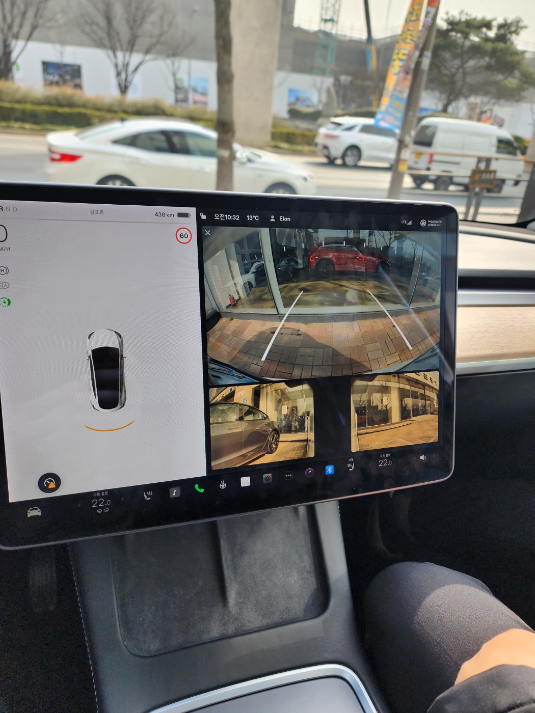 그리고 테슬라의 백미는 자율주행입니다. 자율주행 모드를 설정하면 앞차와의 거리까지 설정이 가능하고 깜빡이를 인식해서 좌우로 차선 변경과 코너를 돌아가는 것도 가능했습니다. 가속페달에서 발을 떼었을 때 브레이크가 걸리는 것은 여느 전기차와 마찬가지였지만 테슬라가 좀 더 강하게 브레이크가 들어가는 느낌이었습니다.